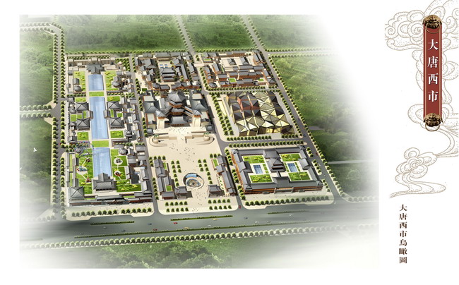“大唐西市”项目是在西安市政府“皇城复兴计划”的推动下,形成的一个以商业为主线,以丝路风情和文化为特色的综合性商业地产项目。项目占地约500亩,总投资35亿元人民币,是全国唯一在原址上重建的项目,同时也是陕西省、西安市、莲湖区的三级重点建设项目。