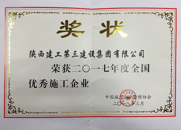 近日,从中国施工企业管理协会传来喜讯,集团公司被评为2017年度全国优秀施工企业,这是继2016年后再次荣获该项荣誉。