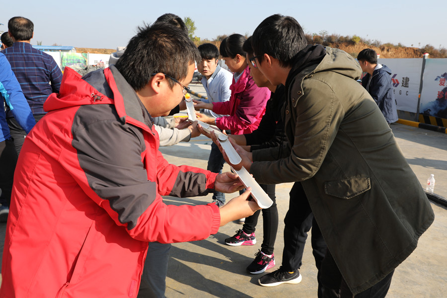 会后,在项目上举办了一场别开生面趣味运动会。运动会由安康地区在建项目的第七工程公司、第八工程公司、市政公司、安装公司4个团队的40名青年参赛,共设10个比赛项目,分别是抢凳子、吸管运输、演技传声筒、摸石头过河往返接力等。各参赛选手斗志昂扬,整个活动现场高潮迭起、精彩纷呈、笑声不断。活动评选出了优胜奖和参与奖,并为获奖青年颁发了奖品。