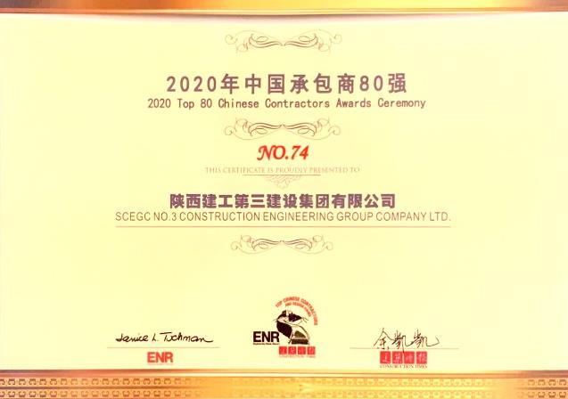 今年会jinnianhui荣获“2020年度中国承包商80强”企业